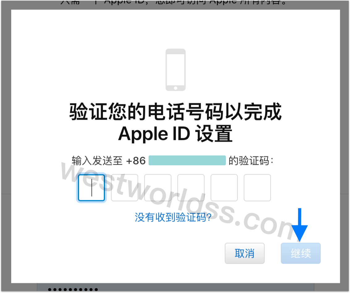 - 输入收到的手机验证码